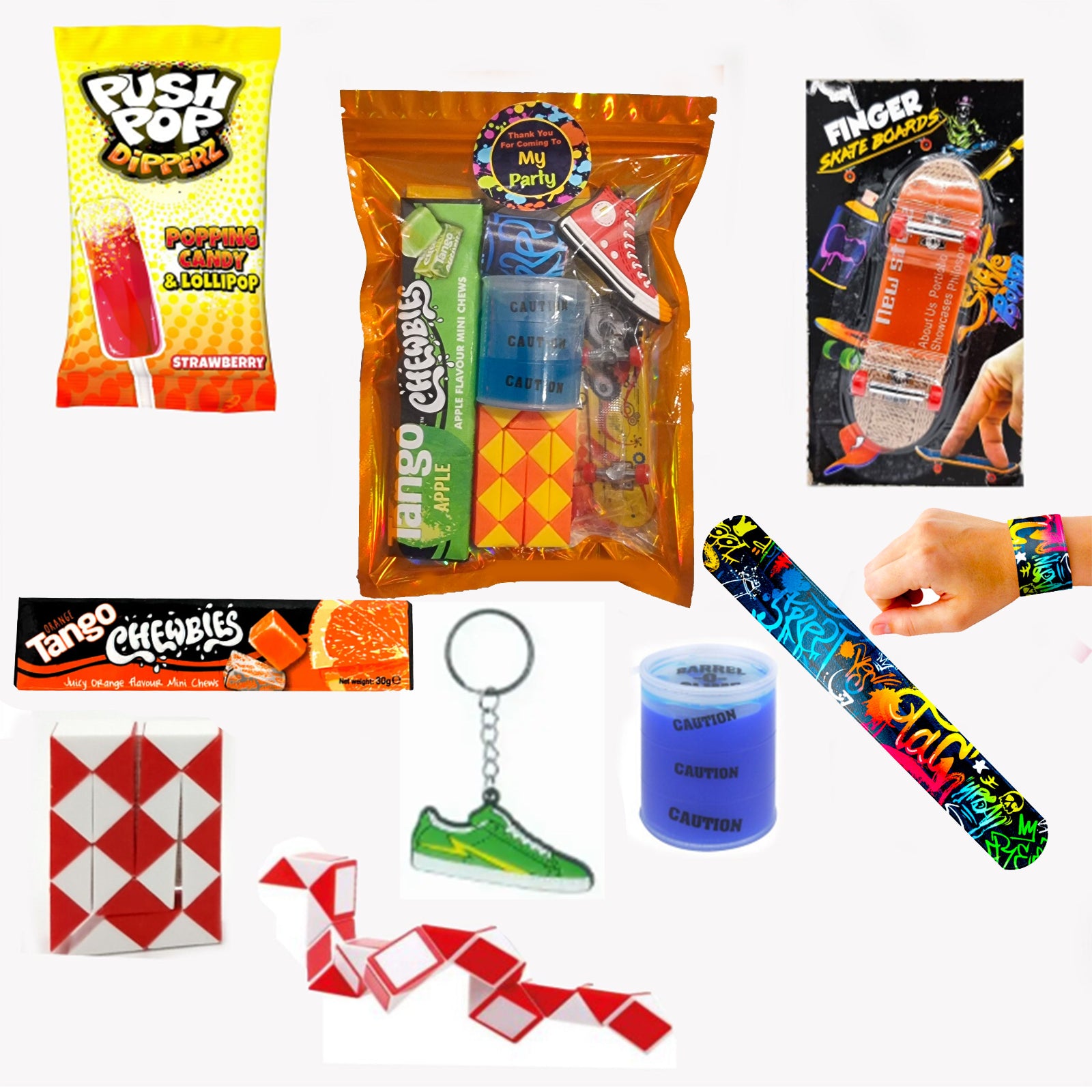 Older Boys Pre Filled Birthday Skateboarding Goody Bags With Toys And Sweets, Party Favours.