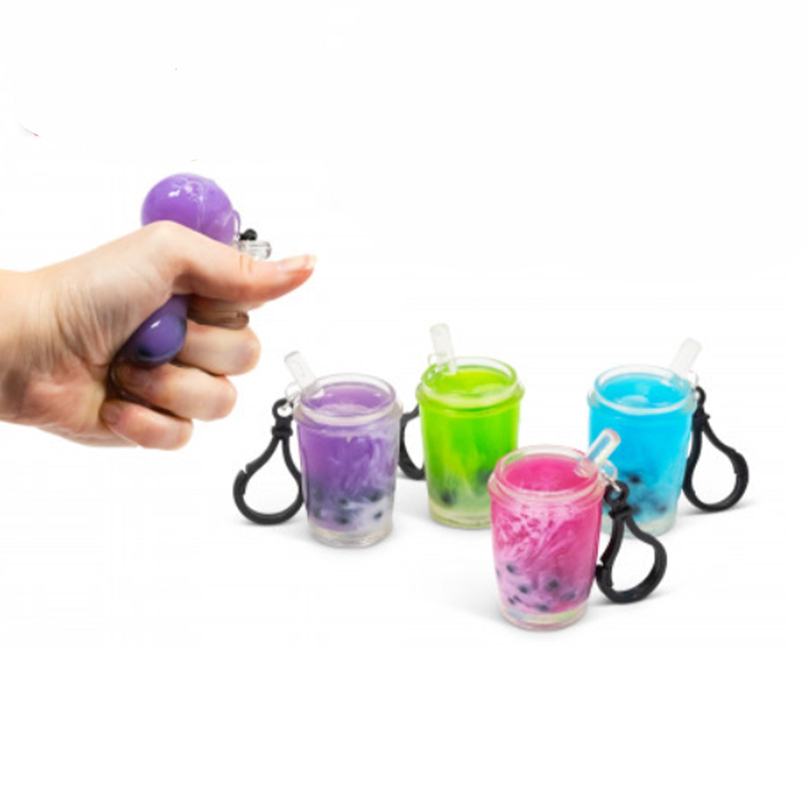 - 1x Squishy Boba Tea Keyring: Keyring and fidget toy in one. Assorted colours, squish it and watch the boba molecules create a movement in a milky fluid.