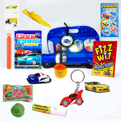 Pre Filled Blue Cars Party Favours Goody Bags With Toys And Sweet For Boys.
