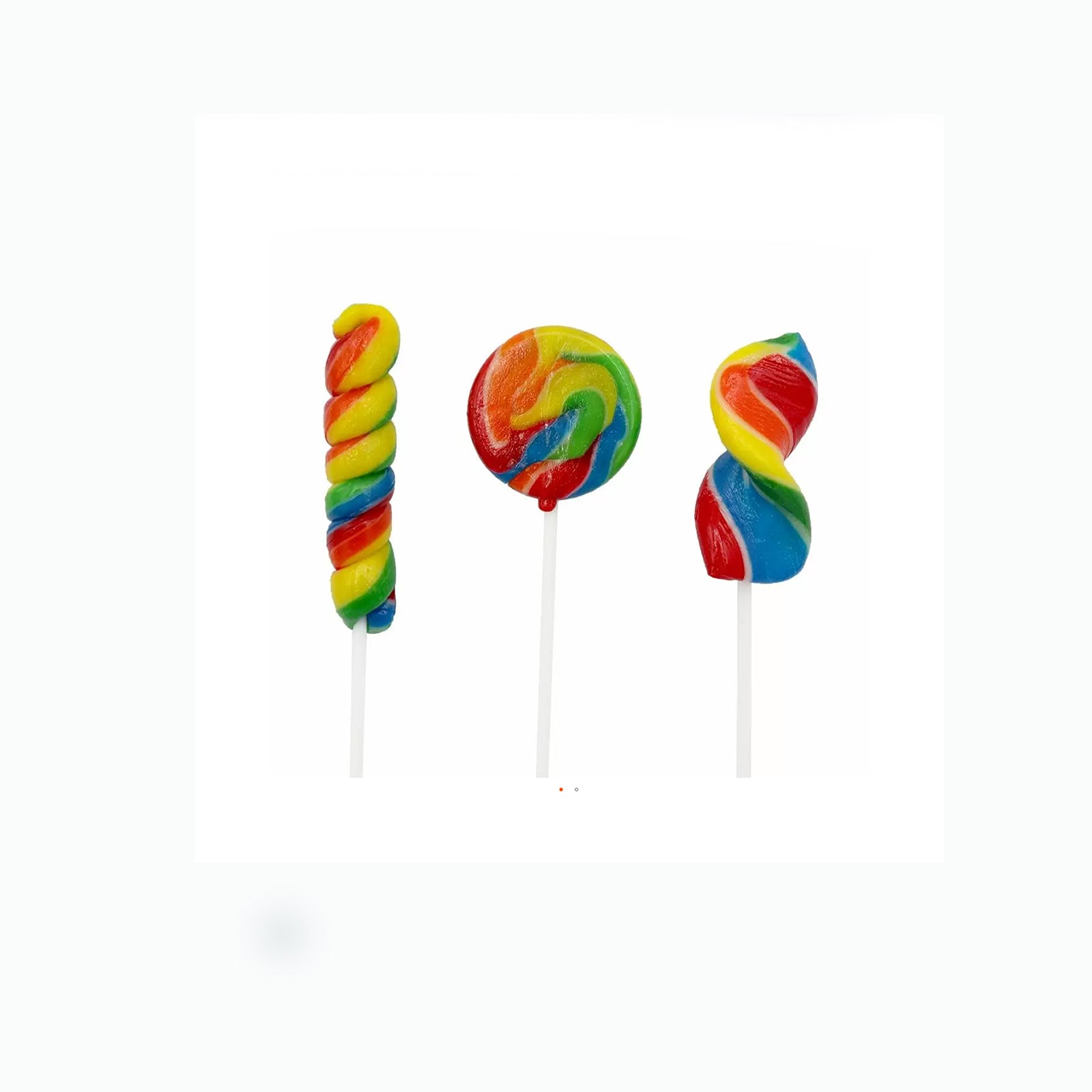 - 1x Rainbows Lollipop: Fruit flavoured lollipop in assorted shapes and rainbow colours. Vegan and Halal.