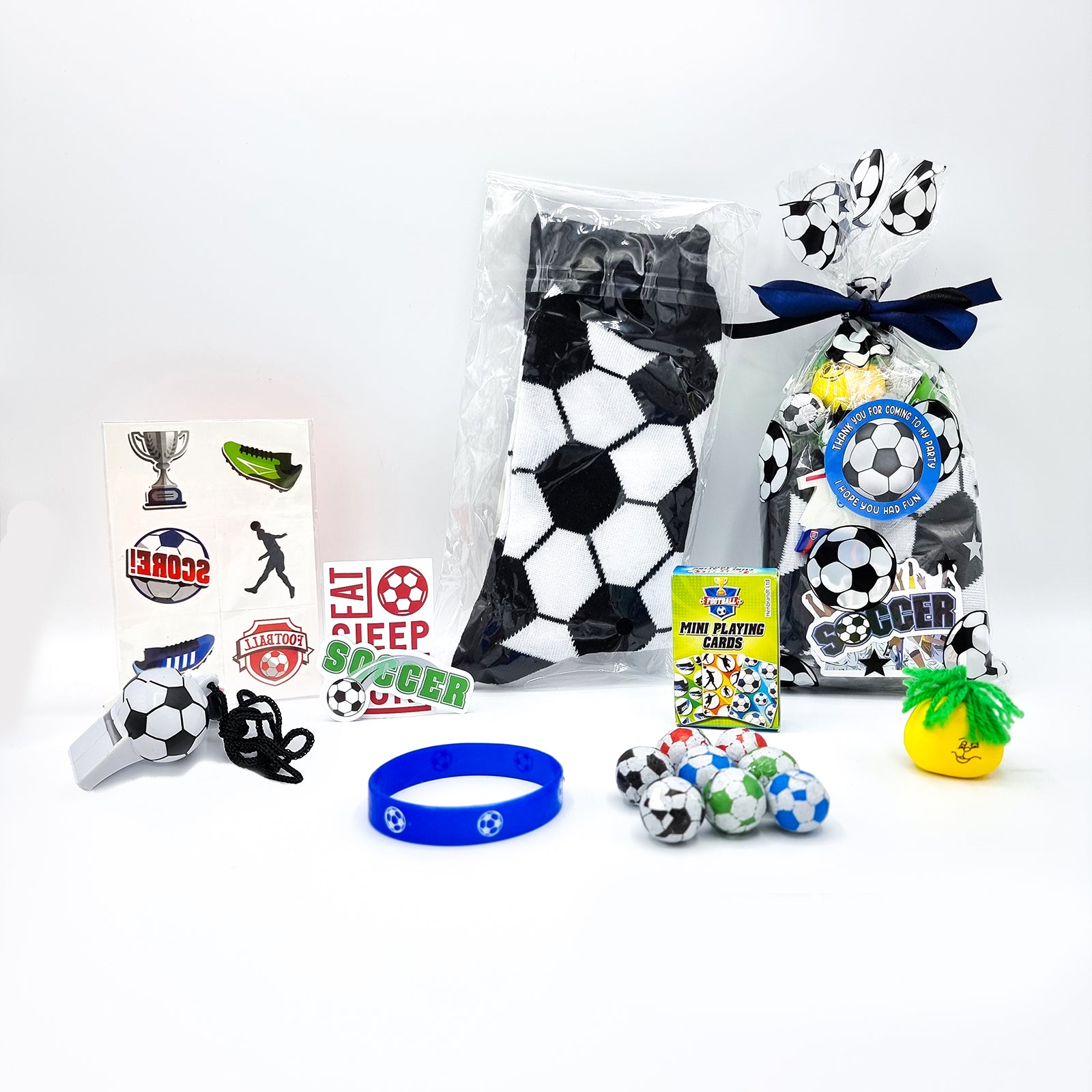 These high-quality pre-filled party bags are sure to entertain all the little football fans with their exciting contents. They are available in two options for both boys and girls, and are packed with a variety of toys and sweets like football socks, silky football hair scrunchies, football bracelets and novelty candy.