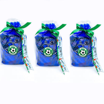 Our goody bags are designed with both durability and aesthetics in mind. Each bag comes packed in a thick, blue double layer cellphone bag and is tied up with a green and football goal design ribbon. And to make each bag truly special, we've included a football themed sticker with a message that reads 'Thank you for coming to my party'.