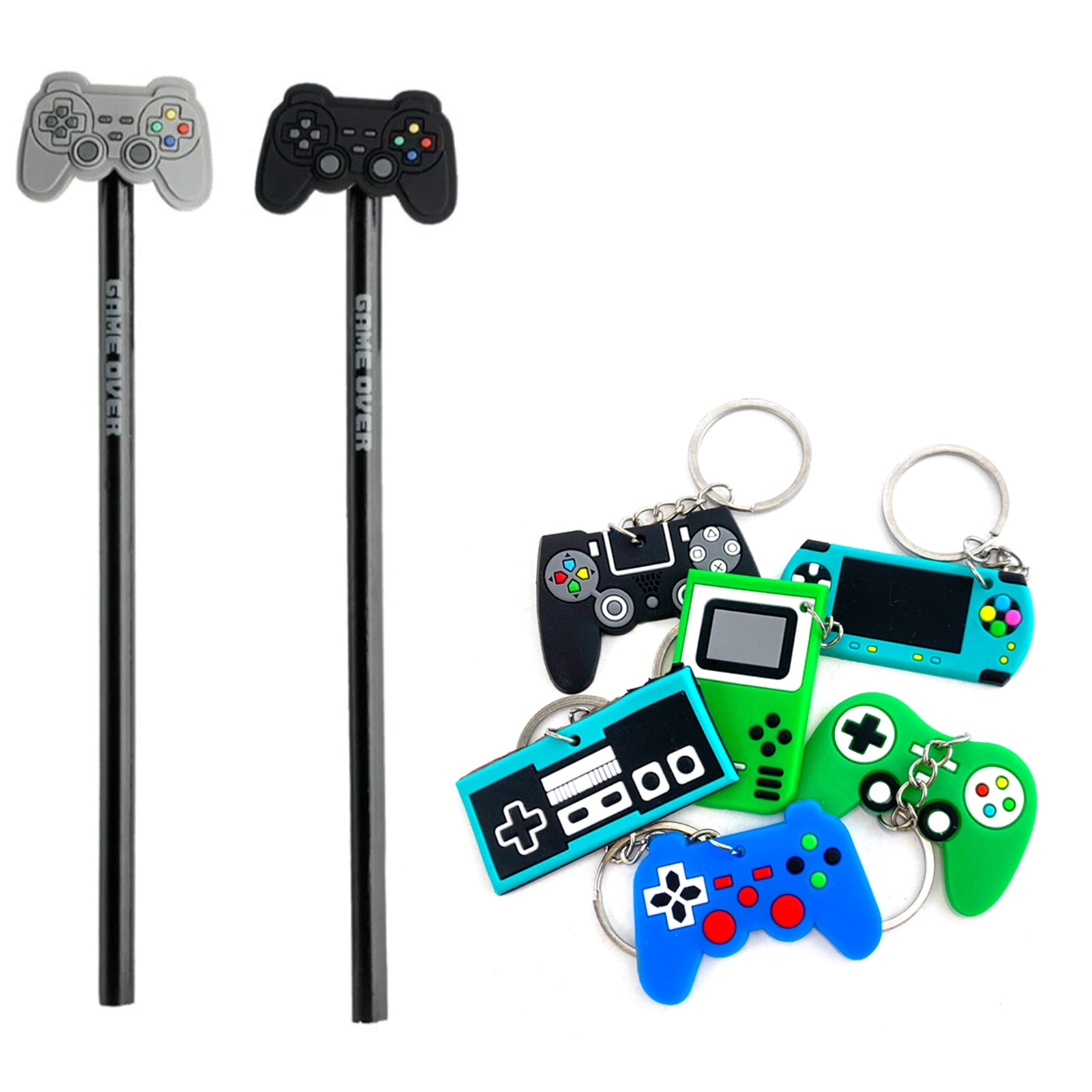 1x Retro Gamer Keychain: Quality silicon keychain in four assorted gamer designs.