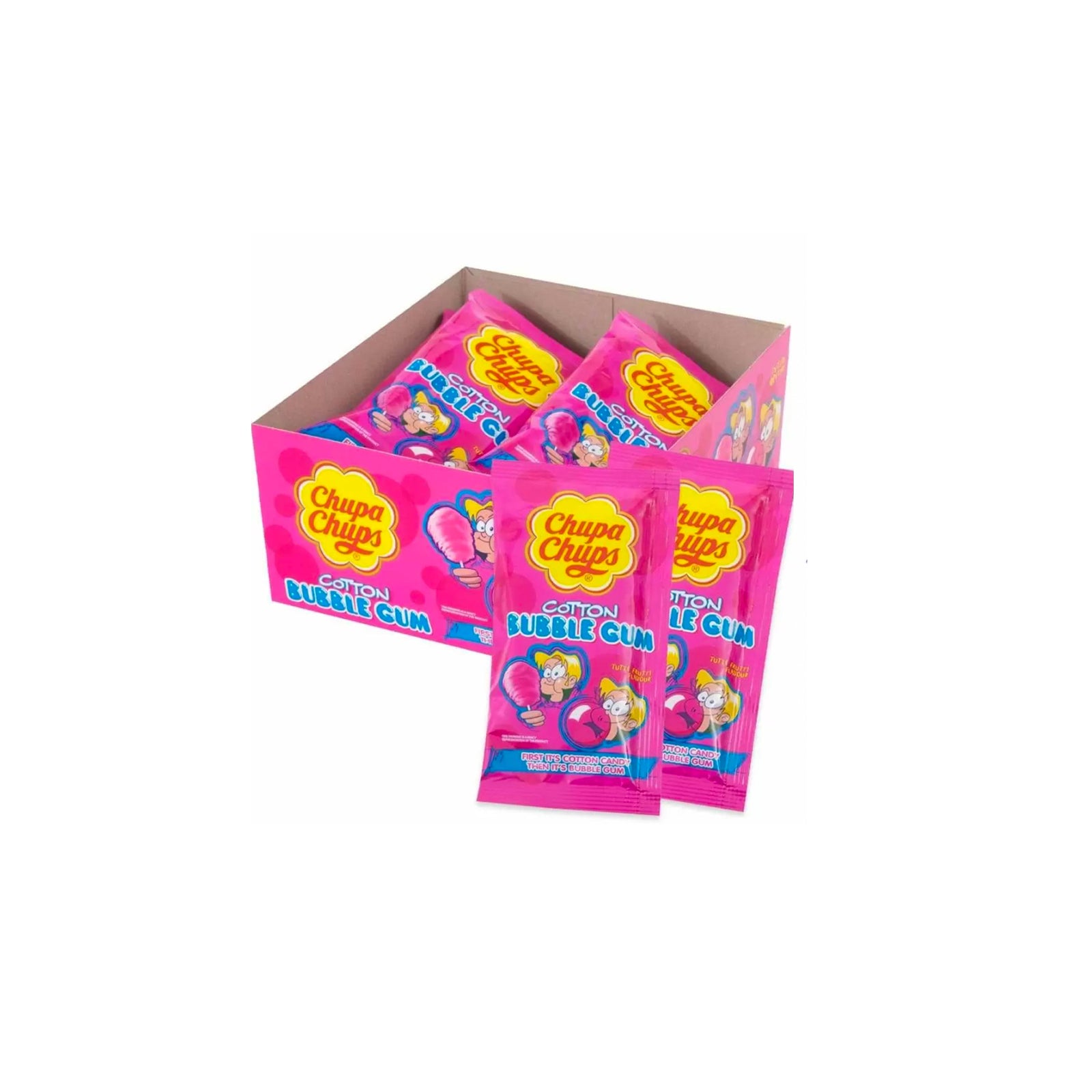 1x Chupa Chups Bubble Gum: 11gr, Perform your own magic by turning sticky sweet candy floss into furiously flavoursome bubble gum. Tutti Frutti flavour.