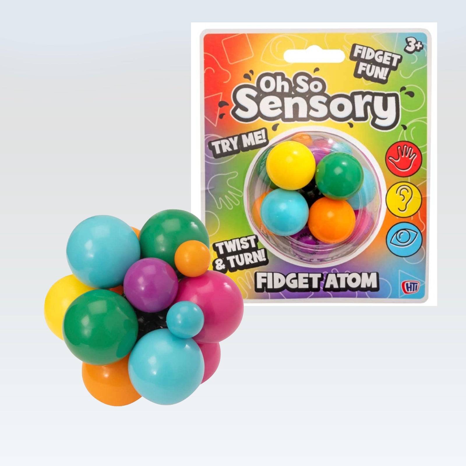 1x Atomic Metallic Fidget: Super fun sensory fidget toy. Made up of a selection of elasticated squeeze balls. Colours may vary. Size 7cm.