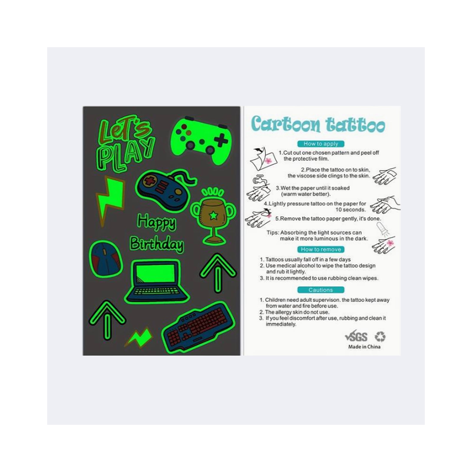 1x Sheet Of Gamer Tattoos: Assorted designs. Styles may vary.