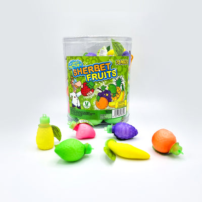 - 1x Mini Fruit Sherbet: Fruit flavoured sherbets in assorted fruit designs. Vegan And Halal.