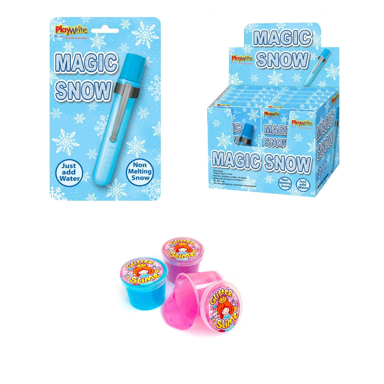 1x Make Your Own Snow Tub: Magic Snow in “test tube” which when mixed with water turns into fluffy white "snow", which is curiously dry to the touch and lasts for days.