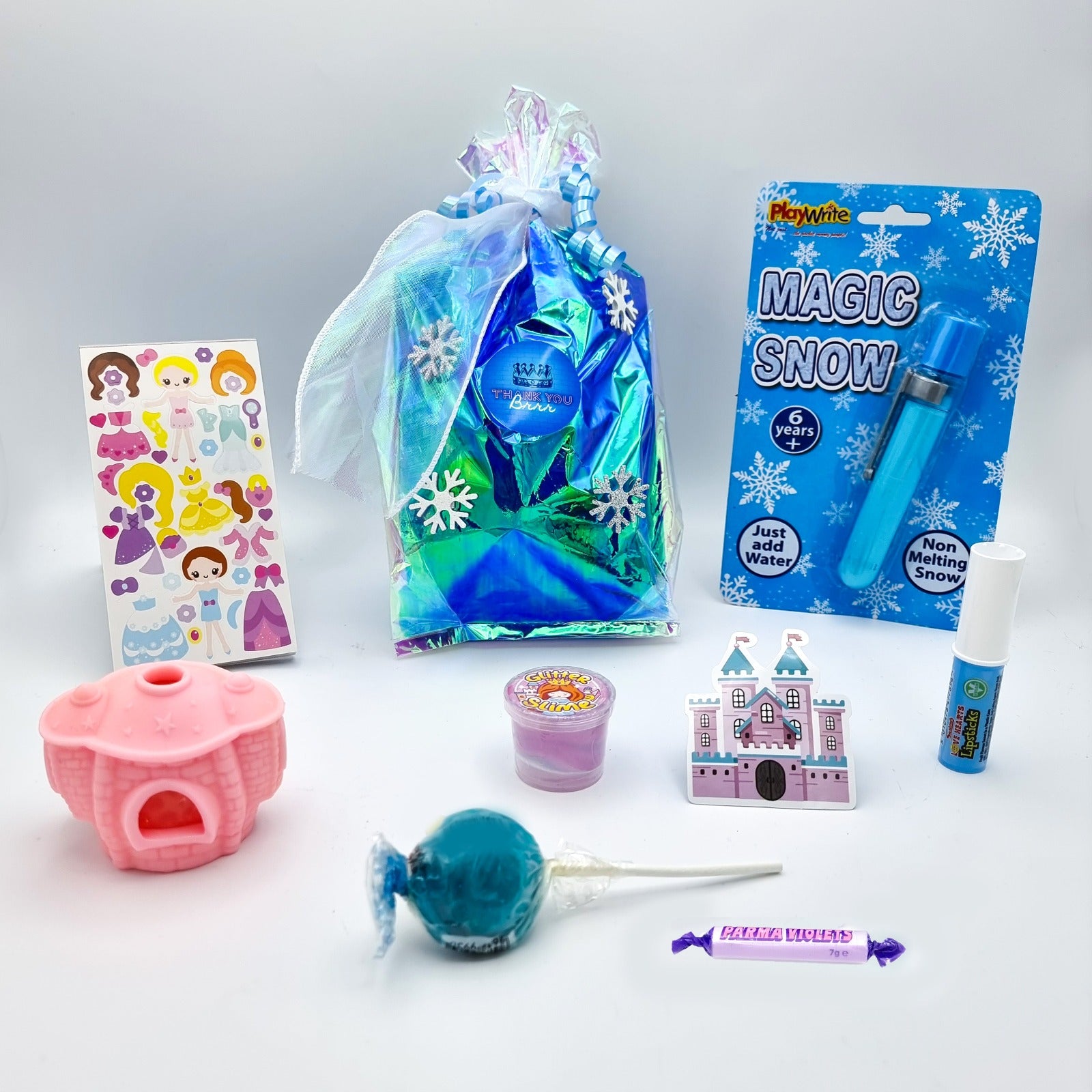 Let your little princess experience a special celebration with our amazing Pre-Filled Winter Princess Castle Christmas Birthday Party Goody Bags for Girls. Celebrate birthdays or festive gatherings with these luxury blue party favours, designed with care to make every moment special.
